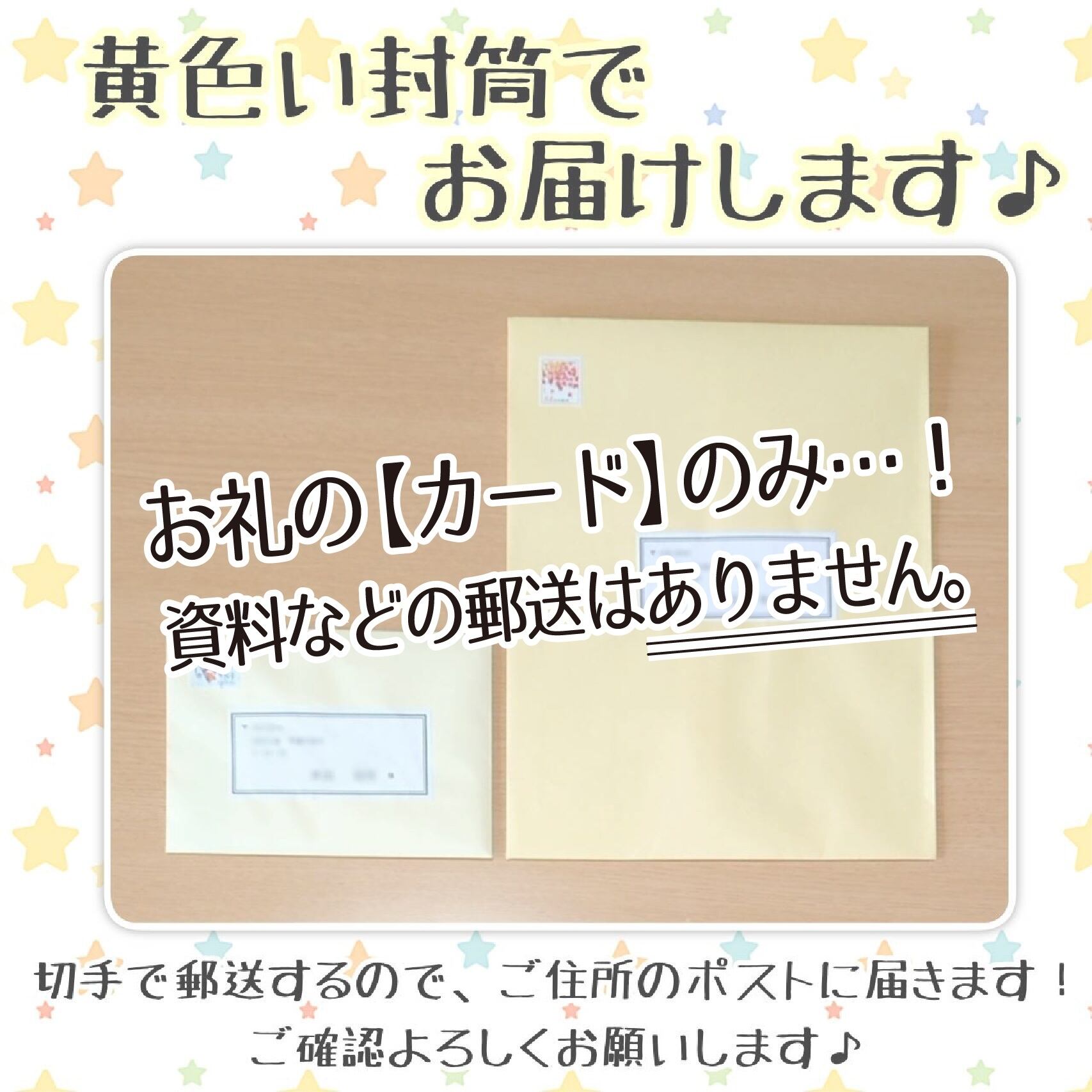 黄色い封筒にて郵送させていただきます♪