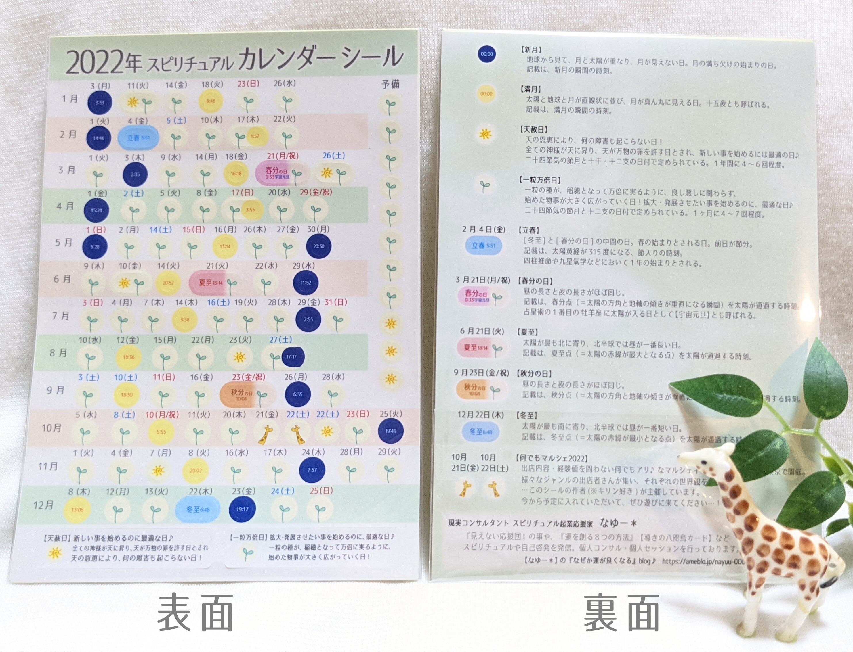 2022年 開運日シール (一粒万倍日・天赦日・新月・満月・夏至など)&開運カレンダーSET